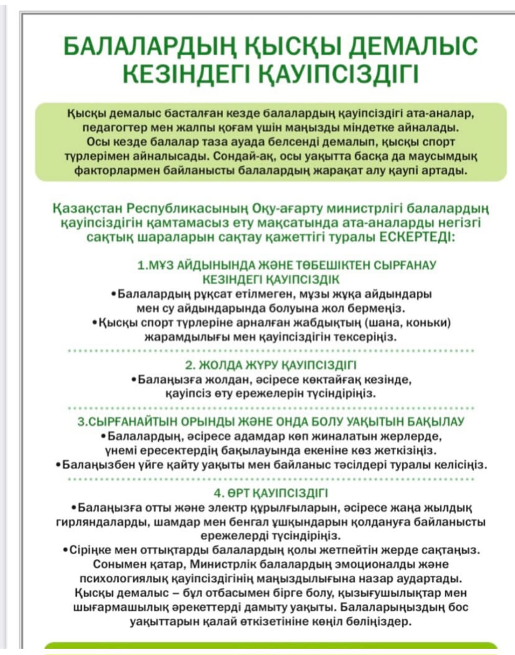 » Балалардың қысқы демалыс кезіндегі қауіпсіздік ережелері