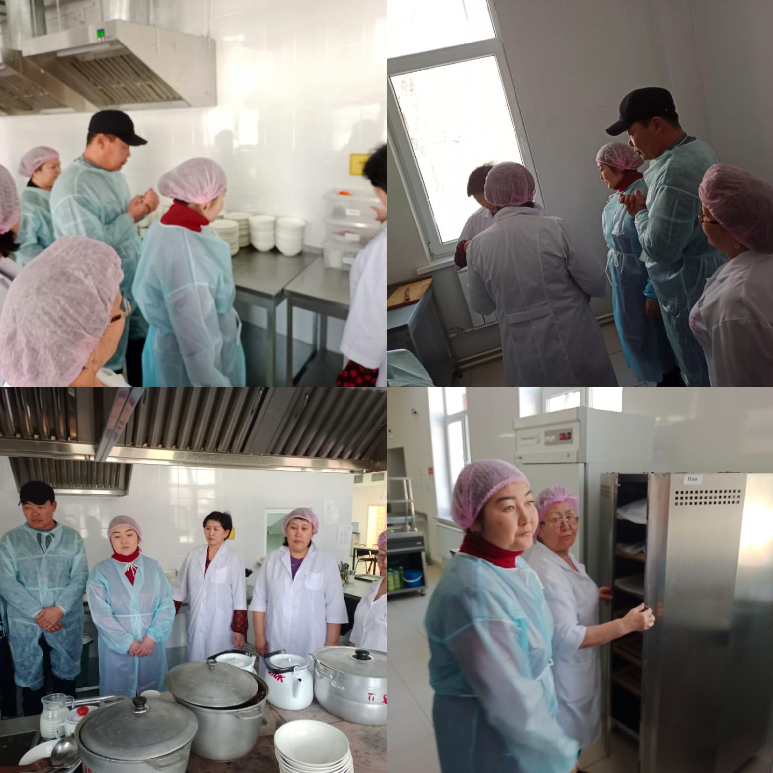 Шикі өнімдермен дайын болған тағамдарды сақтайтын орындар, тамақтану сапасын бақылау журналы, тамақтандыру бөлмесінің санитарлық жағдайы тексерілді. Тағамдарды өлшеу кезінде масса нормаға сәйкес келді.