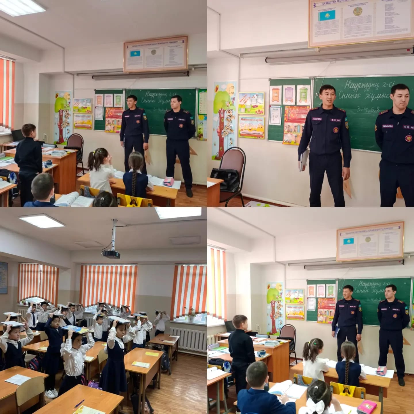 Балалардың жер сілкінісі кезіндегі қауіпсіздік ережелері туралы білімдерін қалыптастырып, қауіп төнген кезде өздерін қорғай білуге машықтандыру мақсатында Жетісу ауданы Төтенше жағдайлар Басқармасының аға инженері азаматтық қорғау капитаны Ауғанбай Асқар Ерболұлы мен бас маман азаматтық қорғау аға лейтенанты Аманбеков Біржан Серікұлы бастауыш сынып оқушыларымен дәріс өткізді.