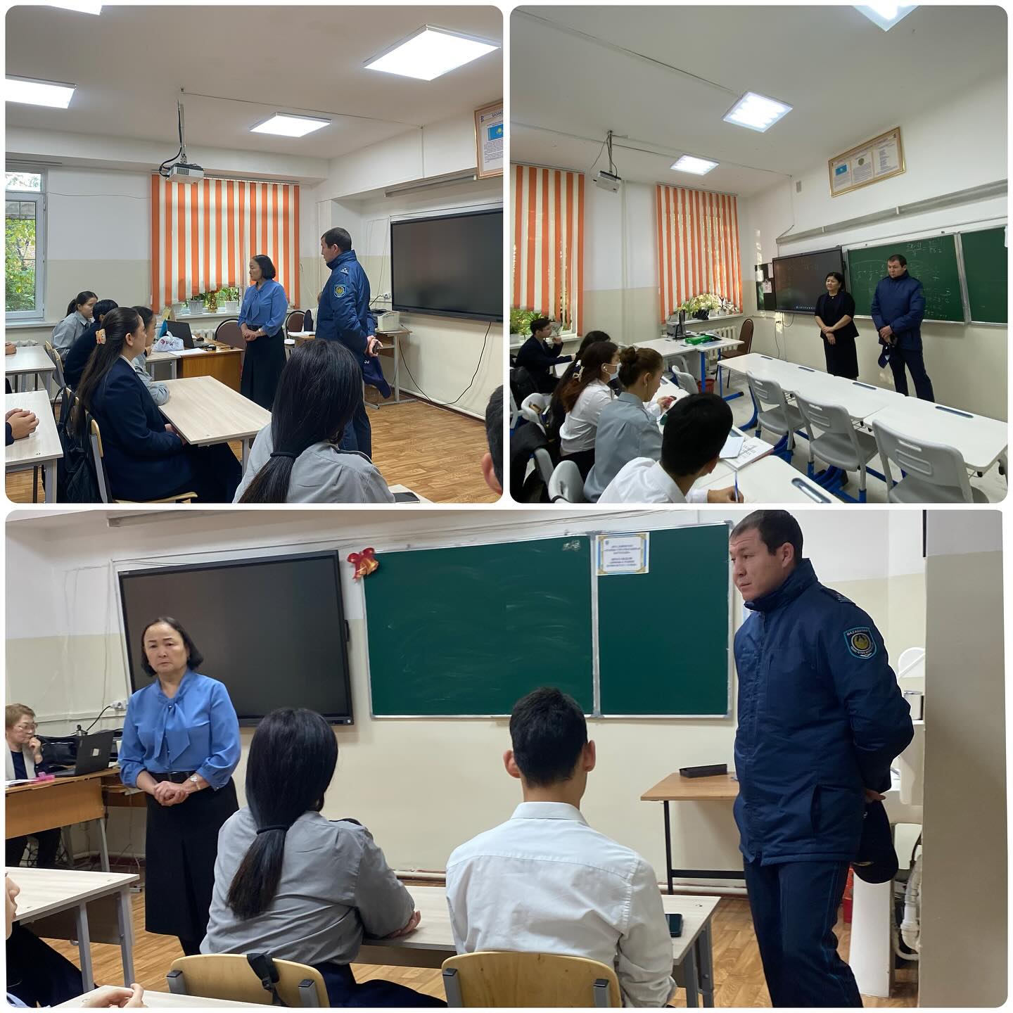 Мектебімізде құқық бұзушылықтың алдын алу мақсатында 9-11 сынып оқушыларына “ Нашақорлыққа жол жоқ!”, «Құмар ойын және оның салдары»тақырыптарында мектеп инспекторы Ж.М. Жумадилов мен директордың тәрбие ісі жөніндегі орынбасары Т.Көкенова профилактикалық жұмыс жүргізілді. Мақсаты: оқушыларды түрлі құқық бұзушылық істерден, нашақорлықтың алдын алу, алаяқтардан сақ болуға шақыру, жол жүру ережелерімен таныстыру.