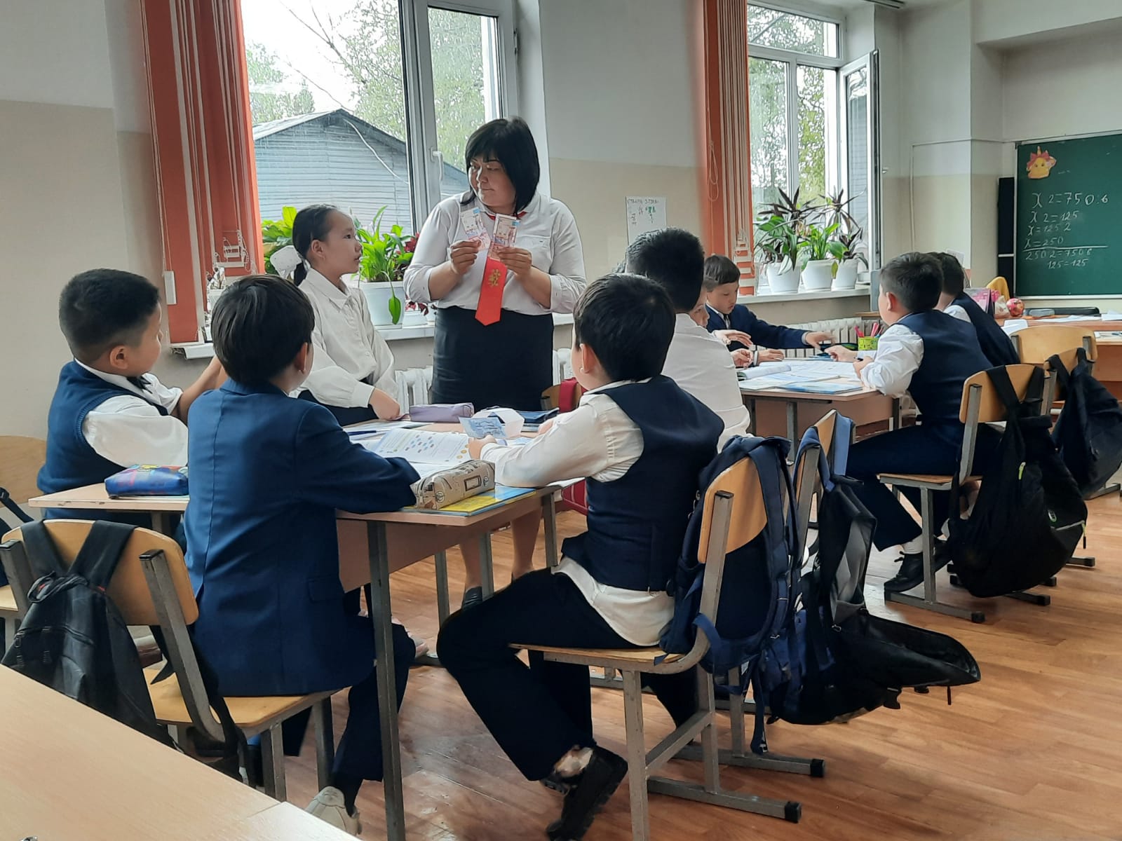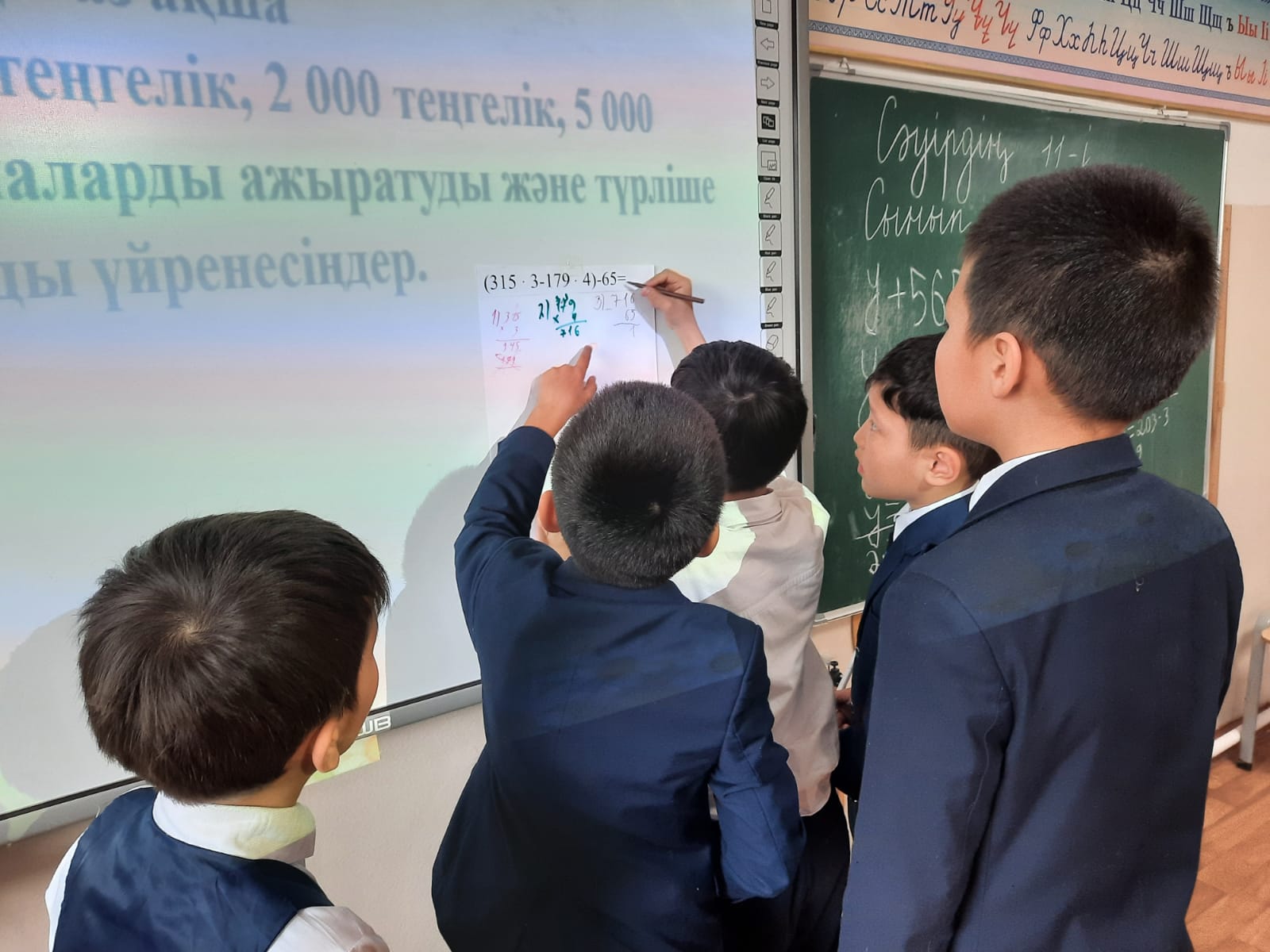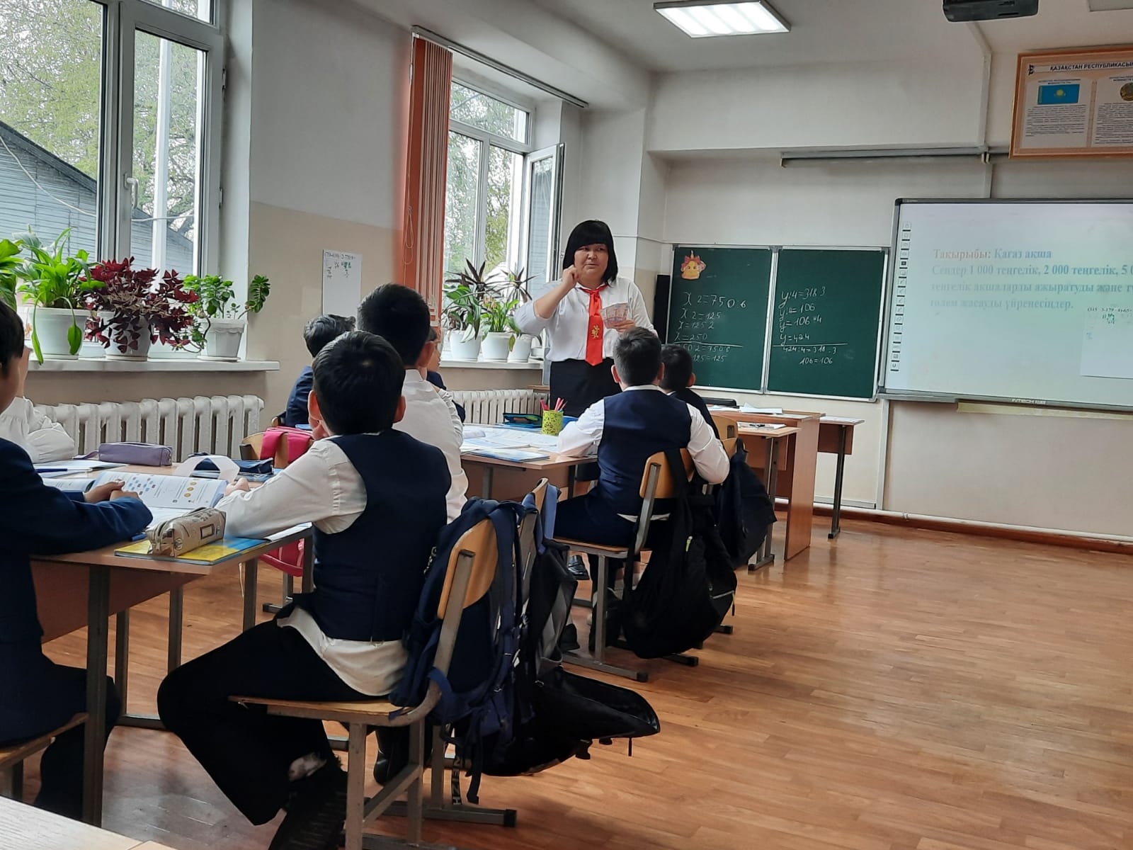 "Бастауышым-бастамам, білім жолын бастаған!" атты бастауыш сыныптар бірлестігінің апталығы аясында бастауыш сынып мұғалімі Спанбетова А.Р. 3А сыныбында математика пәнінен "Қағаз ақша" тақырыбында ашық сабақ өткізді. Сабақтың мақсаты 1000 теңгелік, 2000 теңгелік, 5000 теңгелік ақшаларды ажыратуды және түрліше төлем жасауды үйрену.
