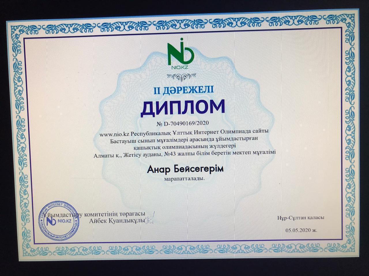 Мұғалімдер арасындағы олимпиада жүлдегері